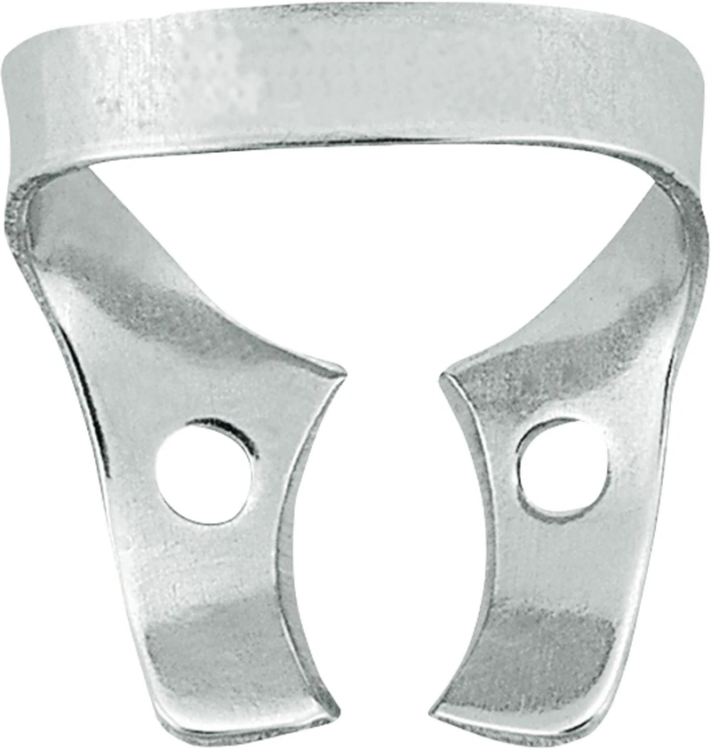 Høykvalitets rustfrie stålklemmer med pålitelig konstant spenning for å feste kofferdam til den behandlede tannen.