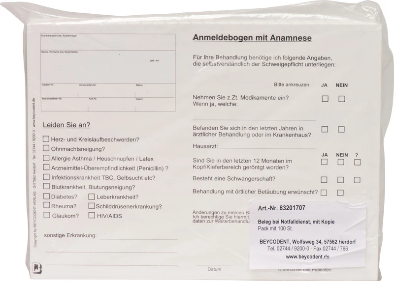 For en strukturert og rettssikker dokumentasjon av akuttbehandlinger tilbyr den selvkopierende akuttbeviset i DIN A5-format en optimal løsning for tannlegepraksiser.
