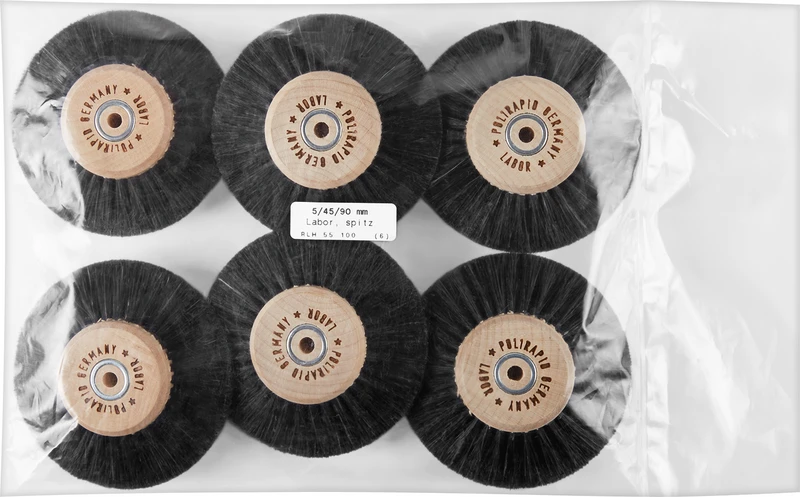 Labor rundbørster med tre- (HK) eller plastkjerne (KK). Rundbørster med Chungking-bust i spiss og bred utførelse. Samt ulike kjernetverrmål og besetningslengder.