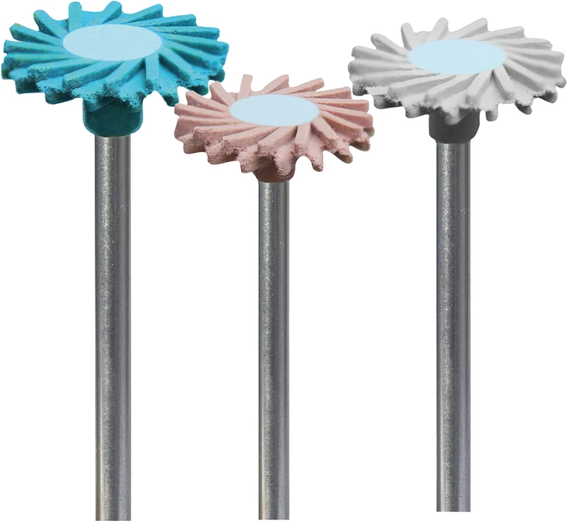 Sett 3 poleringsinstrumenter (blå grov, rosa medium, grå fin), HP, 14 mm