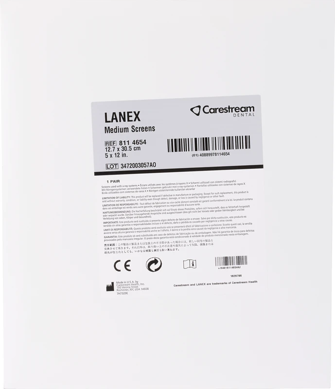 Uten skum for handelsvanlige kassetter. Grønn-emitterende forsterkningsfolie for bruk med filmen T-MAT G/RA. LANEX® Medium folie: følsomhet S = 250. LANEX® Regular folie: følsomhet S = 400.