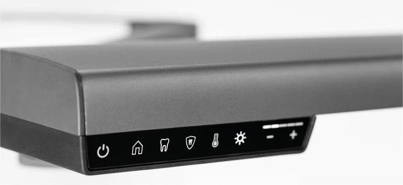 - Jevn flateopplysning med rektangulær belysning (tilpasset tannteknisk arbeidsbord) takket være stort arbeidsfeltlys og høy lumenverdi