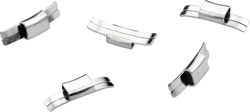 Lås i rustfritt stål for lodding eller laser på molarbånd. Fås i rette og buede varianter.