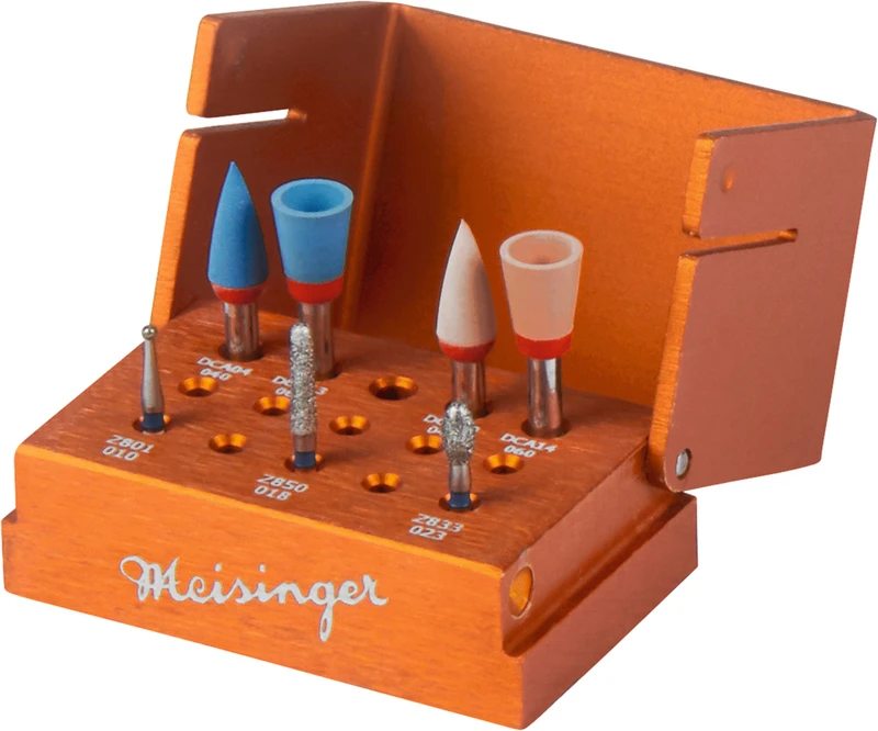 Kitet inneholder diamantbelagte og formoptimaliserte instrumenter for bearbeiding av zirkoniumoksid-restaureringer samt et 2-trinns zirkonpoleringssystem for oral polering for å oppnå et høyglansresultat.