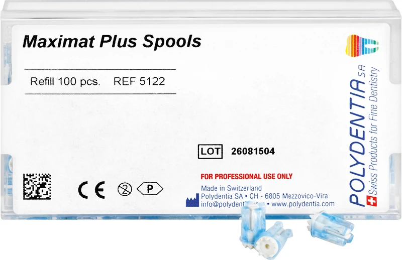 Maximat Plus er et matrisespennesystem for plast- eller stålmatriser i sidetannområdet. Den vanlige matriseholderen bortfaller. Bruken er rask og enkel: Etter at matrisen er justert mot tannen kan den spennes med bare én hånd. Deretter fjernes spenninstrumentet. Under behandlingen blir kun matrisespulen igjen i munnen, noe som gir bedre oversikt over arbeidsområdet. Maximat Plus unngår dreiemomentet fra tradisjonelle matriseholdere, slik at matrisen ikke lenger blir deformert approximalt, og det er dermed mulig å lage et perfekt kontaktpunkt. Flere fyllinger i samme kvadrant kan utføres samtidig.