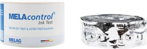 Tinteprøven er et pålitelig testverktøy for ukentlig kontroll av tettheten på forseglingsfugene i henhold til DIN EN ISO 11607-1 og ASTM F1929-12. Tinten som trengs for testen finnes i en praktisk engangssekk. MELAcontrol Ink Test er forseglet i en klar steriliseringspakke. Deretter presses tinten ut av sekken som er i pakken. Med tinten som nå er på forseglingsfugene kan sømmene på alle fire sider av pakken kontrolleres nøyaktig. Uregelmessigheter, mangler eller kanaler i forseglingsfugene blir raskt synlige. Tinteprøven er spesielt egnet for testing av poser med sidefolder.
