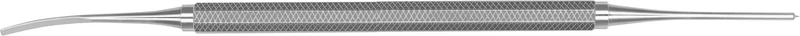 Kombinasjon av en spiss og en buet ende for plassering av membranmateriale ved styrt vevsregenerering. Spissen holder materialet fast.