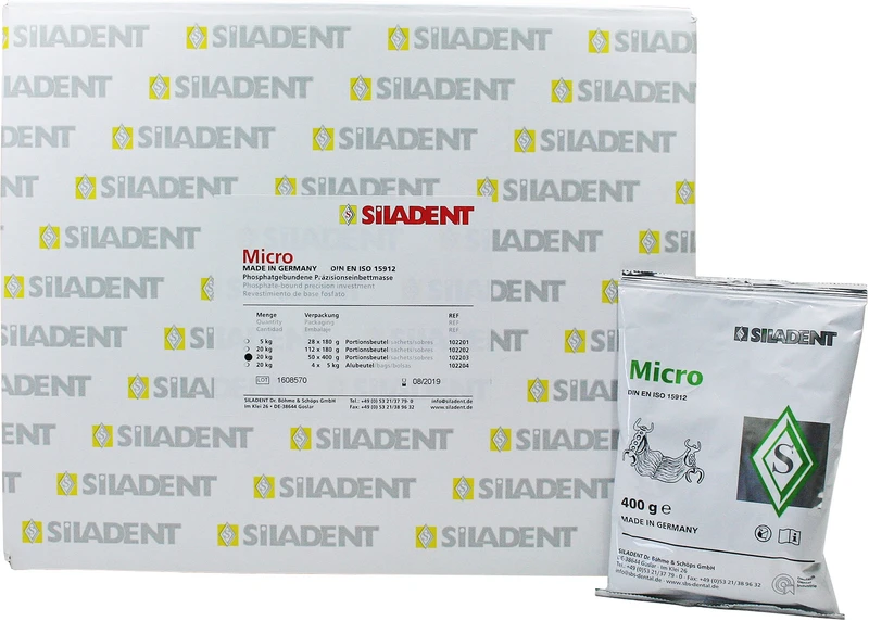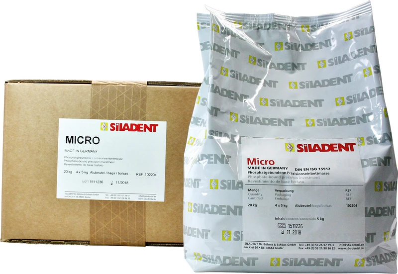 Et fint fosfatbundet grafittfritt presisjonsinnstøpningsmasse. Micro er ikke bare egnet som modellstøpemasse, men brukes også med suksess i krone- og broteknikk. Ekspansjonen justeres som for Granisit med Liquid Typ 100 eller Typ 140.