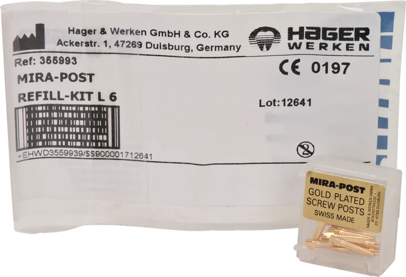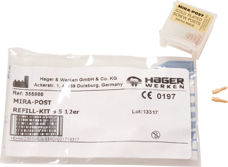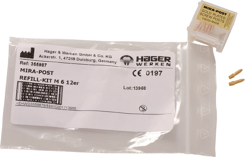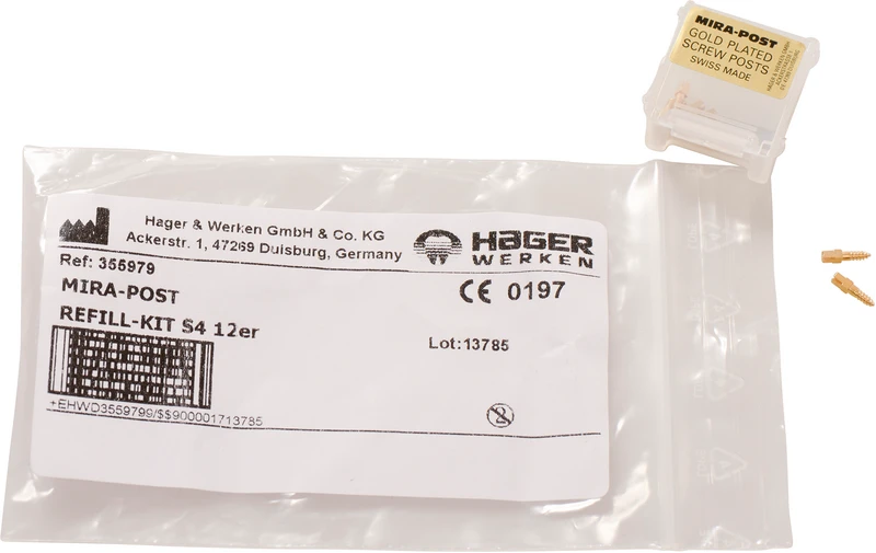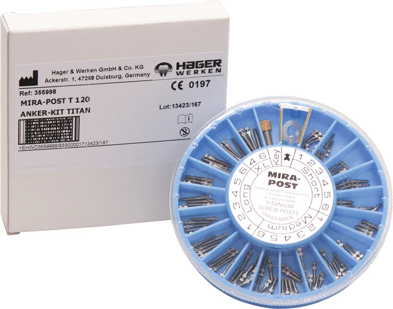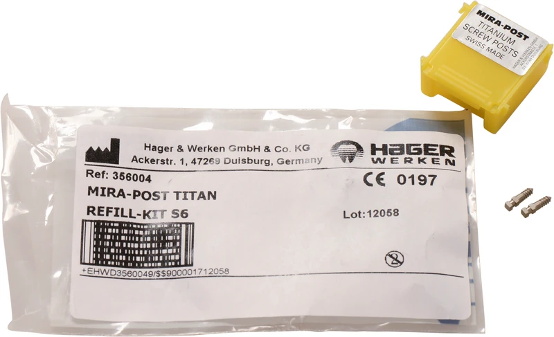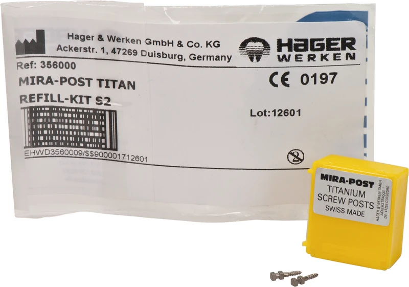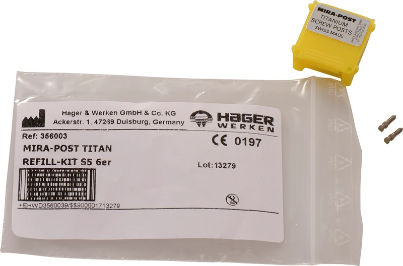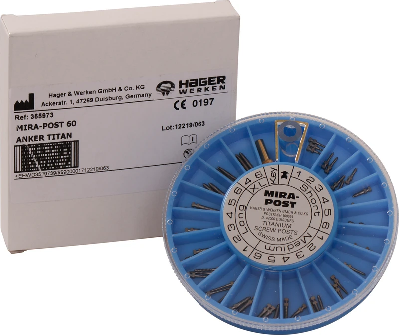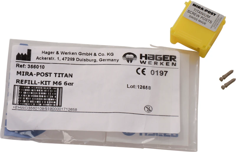 I to varianter: titan eller 24 K forgylt. Kan skrus direkte inn eller sementeres.