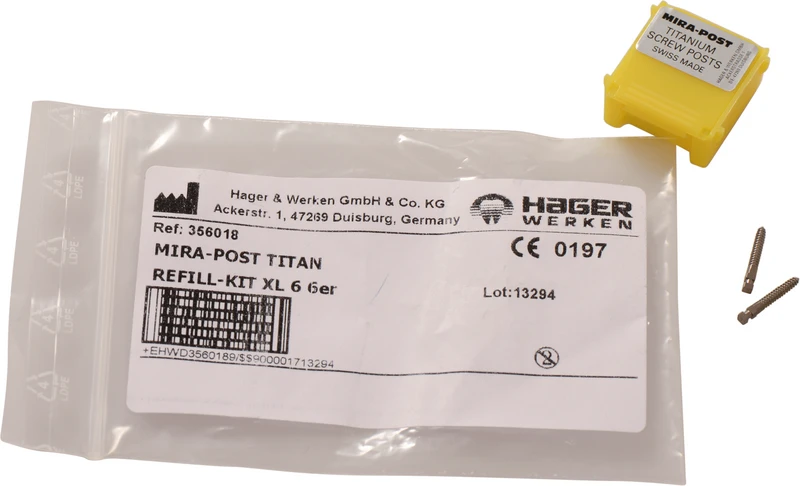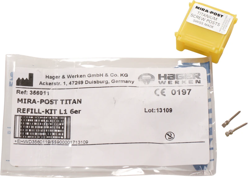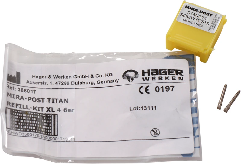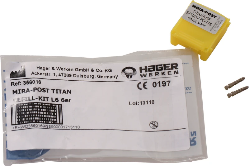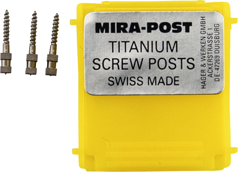 I to versjoner: Titan eller 24 K belagt med gull. Skruer direkte inn eller sementeres.