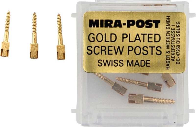Selvskjærende gjenge.I to varianter: titan eller 24 K forgylt. Kan skrus direkte inn eller sementeres.