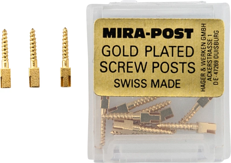 Selvskjærende gjenger.I to versjoner: Titan eller 24 K forgylt. Skruer direkte inn eller sementeres.