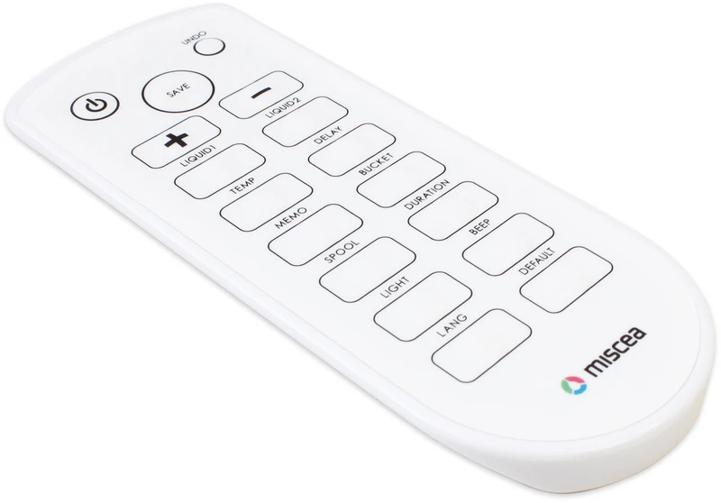 Den miscea fjernkontroll gjør det mulig å stille inn en rekke funksjoner, som f.eks. doseringsstørrelse for såpe eller starttemperatur for vannet. For bruk med miscea CLASSIC og miscea LIGHT armaturer.