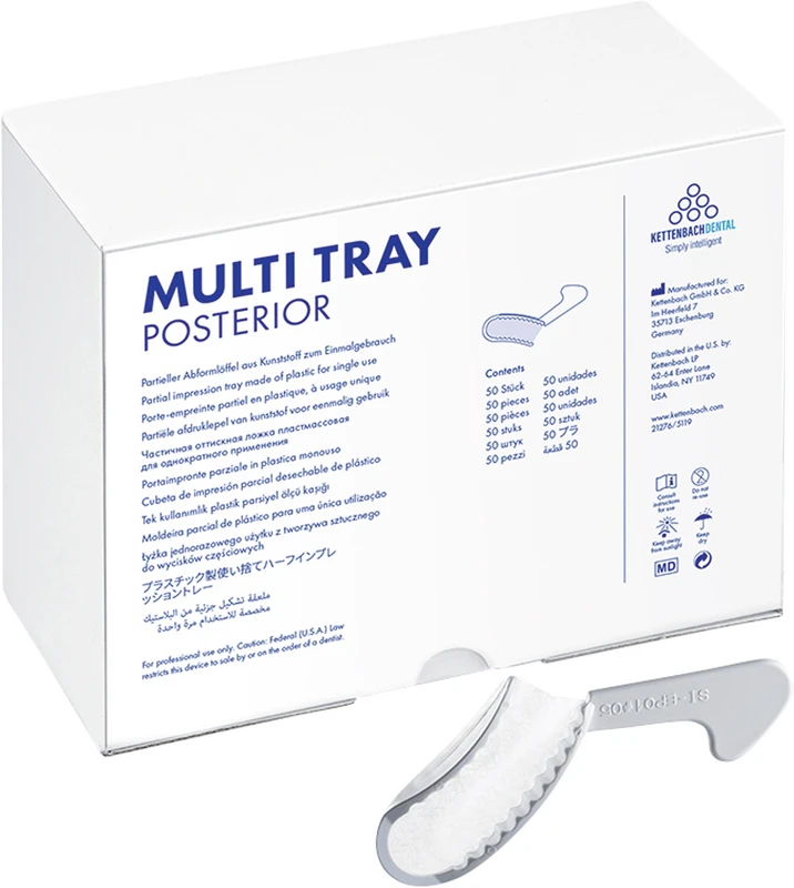 Partielle avtrykkskjeer i plast for engangsbruk for situasjons- og/eller presisjonsavtrykk.