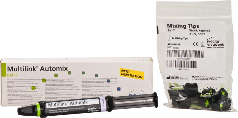 Multilink® Automix er det adhesiv befestingssystemet for befesting av indirekte restaureringer laget av silikat- og oksidkeramikk (f.eks. IPS e.max), metall og metallkeramikk samt kompositt.