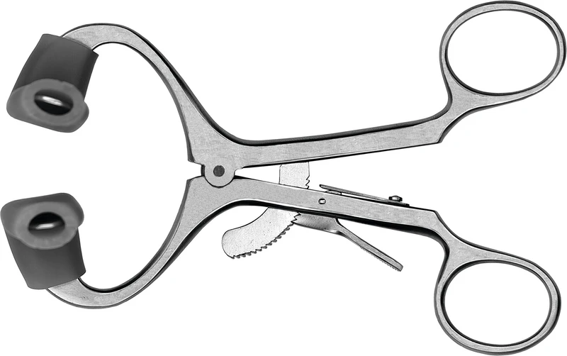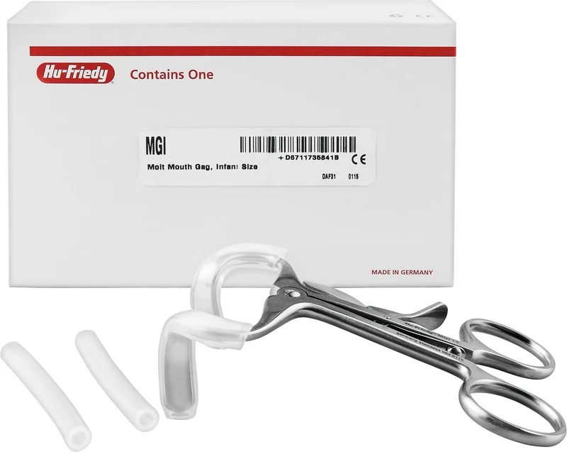 For å låse munnhulen under en ekstraksjon; reduserer risikoen for traumer. Rattledesign gir godt grep uten å gli.