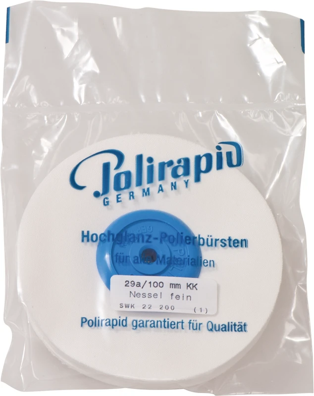 Nesselsvamp med konisk plast (KK)- eller lærkjerne (LK) i forskjellige diametre og tykkelser. Poleringsskiver laget av fint eller grovt bomullsstoff (nessel).