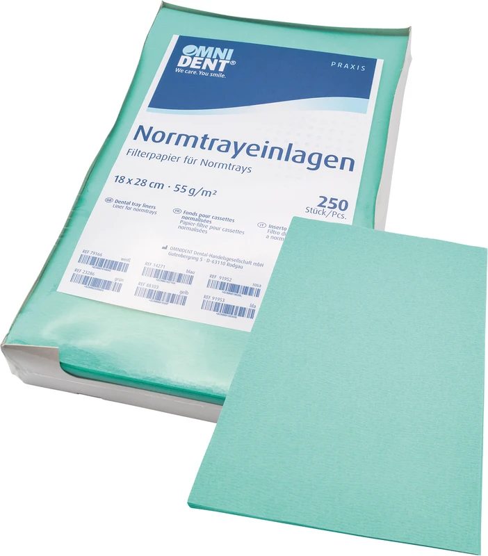 Filterpapir for Normtrays. Svært fuktbestandig krepp 55 g/m². Kartong med uttaksåpning.