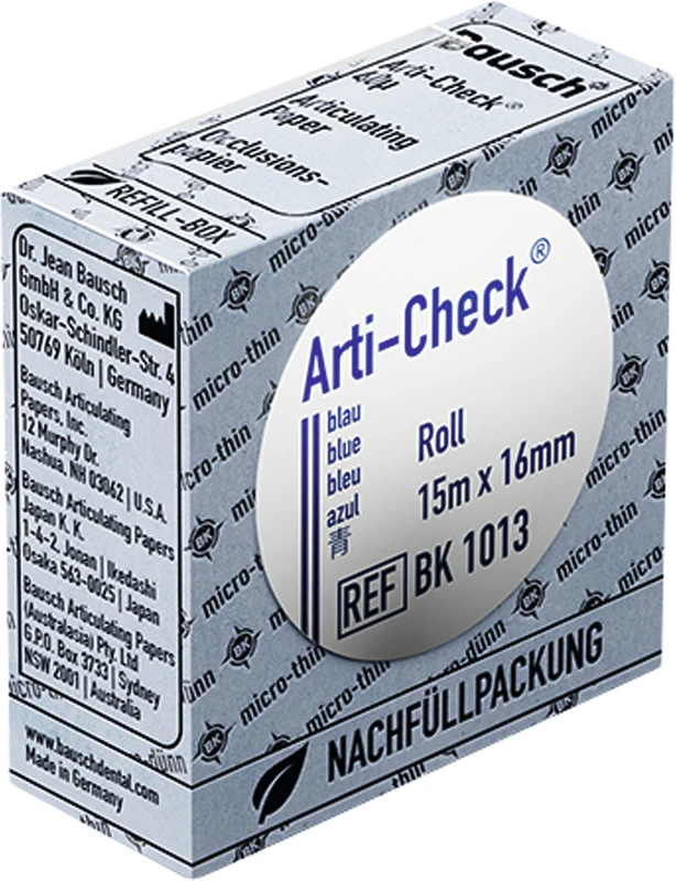 Okklusjonspapir Arti-Check® mikrotunt 40 µ. Rivesterke papirer som er belagt med væskefarger på begge sider.