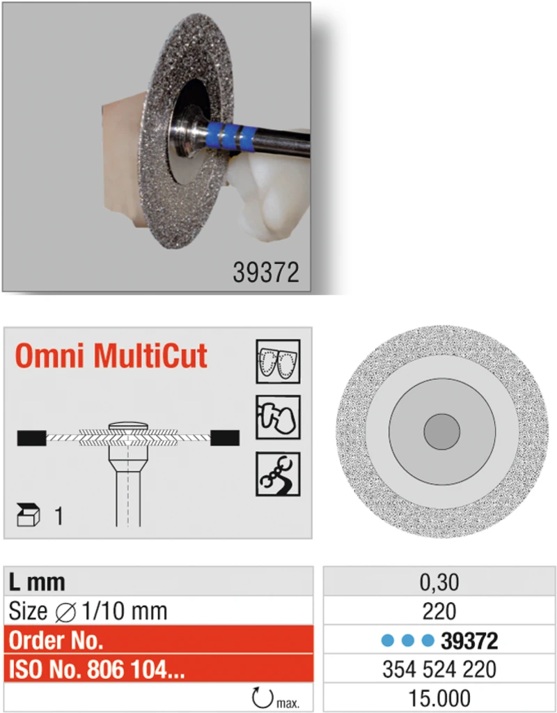 Universal diamantskive med flerlags, galvanisk gjennomgående randdiamantbelegg for høy levetid og høyest mulig skjæreevne. Produsert ved Galvanoforming (galvanoplastikk / elektroforming) gir MultiCut diamantskiven unike egenskaper. Det flerlags, galvanisk gjennomgående randdiamantbelegget garanterer en slipeatferd lik en sintrad diamantskive, men fleksibel.