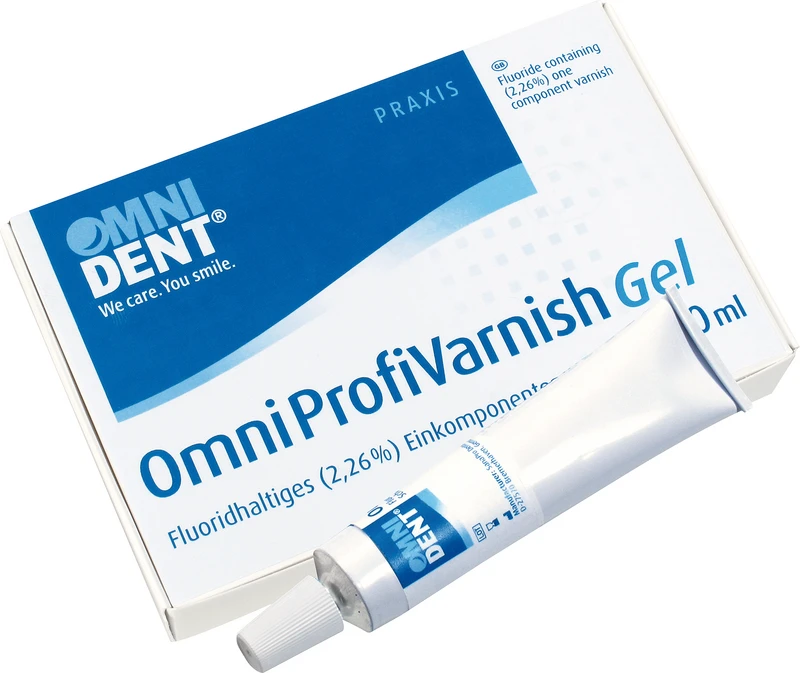 Det Omni ProfiVarnish er et fluoridholdig enkeltkomponent beskyttelseslakk eller –gel, som påføres for å desensibilisere tenner på emalje- og dentinoverflater. Til behandling av hypersensitive tenner, blottlagte tannhalsene og tannoverflater under og/eller etter kjeveortopedisk behandling. Omni ProfiVarnish inneholder, i tillegg til lettløselige fluorider, kalsiumfluorid og fluoroapatitt, som støtter remineraliseringen av tannsubstansen. Omni ProfiVarnish inneholder 22.600 ppm (2,26 %) fluorider.