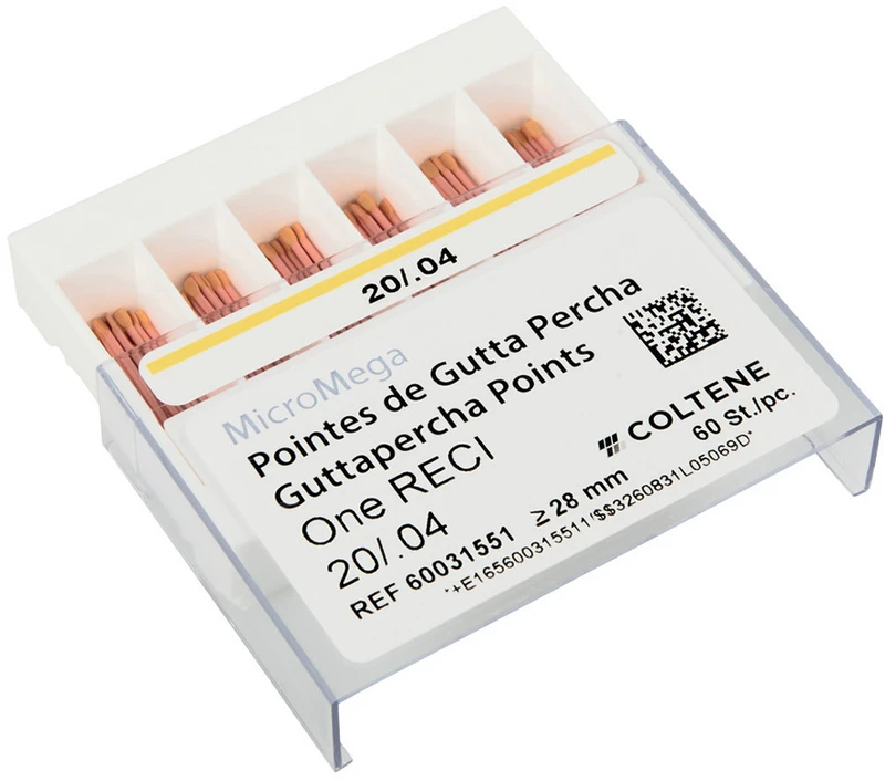 One RECI™ guttaperka-spisser brukes til rotkanalfylling. De tilsvarer størrelsene i One RECI™ filsystemet og har den høye kvaliteten som kreves for presis obturering av rotkanaler.