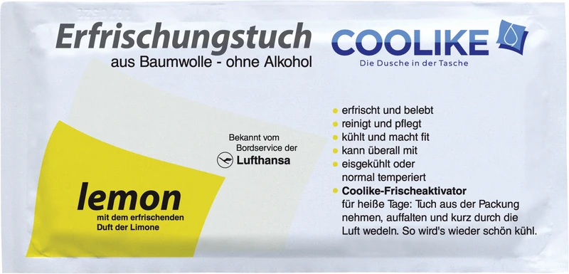Coolike-friskhetsaktivator for varme dager. Ta kluten ut av pakken, brett den ut og vift kort i luften. Slik blir det igjen fint og kjølig. Originale oppfriskningskluter av myk bomull, uten alkohol.
