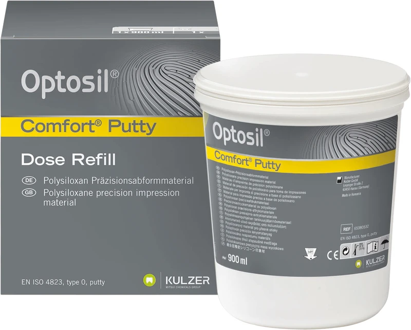 Kondensasjonsherdende foravtrykksmateriale, svært høy konsistens, knetbart. Dobbel avtrykks-teknikk (med Xantopren L eller VL).