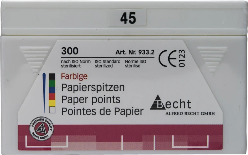 Ekstrem sugeevne og fiberfri overbeviser papirtuppene med optimal styrke og glatt overflate. Laget i henhold til ISO-standard med 28 mm lengde. Folieforsegling og gammastråling oppfyller de strenge kravene til behandlingshygiene.