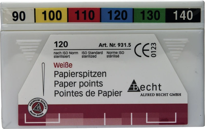 Ekstremt absorberende og fiberfrie papirspisser overbeviser med optimal styrke og glatt overflate. Laget i henhold til ISO-standard med 28 mm lengde. Folieforsegling og gamma-sterilisering oppfyller de strenge kravene til behandlingshygiene.
