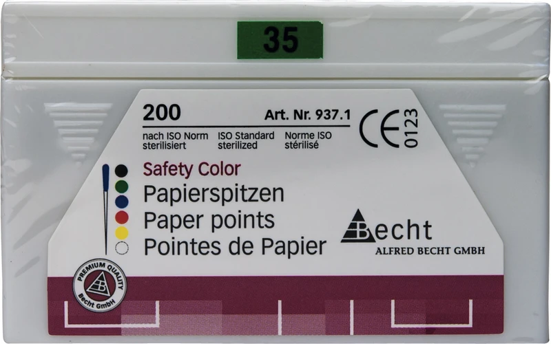 Ekstremt sugekapable og fiberfrie overbeviser papirspissene med optimal styrke og glatt overflate. Laget i henhold til ISO-standard med 28 mm lengde. Folieforsegling og gamma-sterilisering oppfyller de strenge kravene til behandlingshygiene.