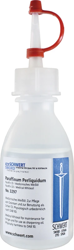 Medisinsk hvit olje: For pleie av instrumenter med ledd og til bruk som slipemiddel. Fysiologisk ufarlig ifølge DAB 10.