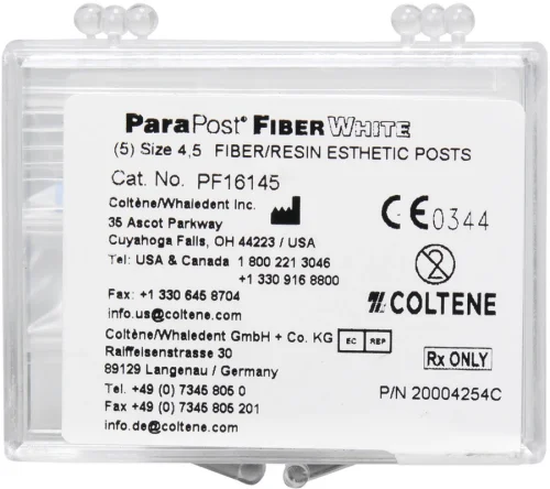 Estetisk metallfri rotstift laget av glassfiberforsterket harpiks-matrise, som danner en kjemisk forbindelse med sement og stumptoppmateriale på komposittbasis. Optimal kjemisk vedheft takket være stor overflate, antirotasjonsflater, hvitt gjennomsiktig materiale forhindrer skygge, elastisitetsoppførsel lik dentin. Rundet hode minimerer stress i oppbyggingsmaterialet. Doble underkutt på retensjons hodet tjener den mekaniske retensjonen av oppbyggingsmaterialet. Røntgenopak – Passive, parallelle trinn på stiftstammen øker den mekaniske retensjonen.