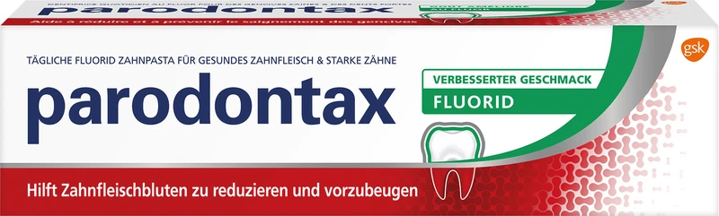 Plakk-bakterier som avsetter seg ved tannkjøttskanten, kan angripe tannkjøttet. Det kan føre til tannkjøttbetennelse (=Gingivitt) eller enda verre til parodontitt. Derfor er det spesielt viktig å fjerne plakk regelmessig ved grundig tannpuss. Standard tannpastaer inneholder vanligvis bare ca. 25 % spesielle ingredienser. parodontax med Fluorid derimot har med 70 % en mye høyere andel. Dermed renser parodontax med Fluorid tennene grundig, reduserer skadelige bakterier og hjelper effektivt mot tannkjøttproblemer.