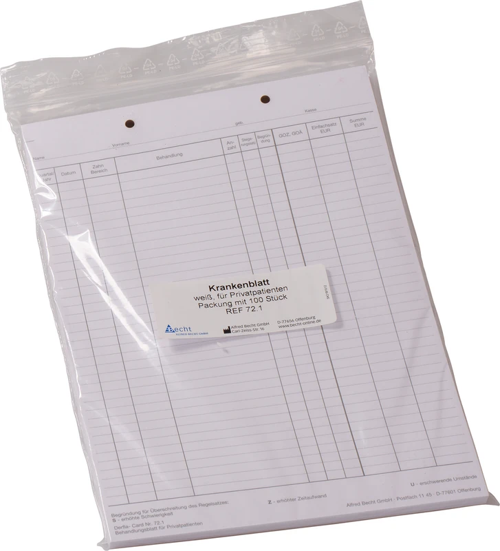 <b>Pakke</b> 100 pasientskjema hvite, for trygdepasienter