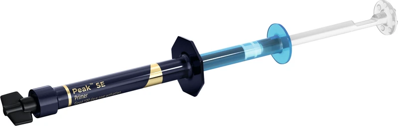 Peak SE Primer selvetsende, fra JetMix™-sprøyten: Først i klinikken blandes de to komponentene i self-etch-primeren ved å trykke inn en stempel; den ferske primeren kan deretter brukes i 120 dager.