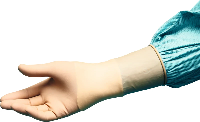 Pudderfrie engangs operasjonshansker i spesielt tynn og myk latex, spesielt også på fingertuppene for utmerket taktil følelse, lette å ta på takket være polymer-innerbelegg, med modifisert mikro-ru overflate for optimal grep, høyt elastiske og rivesterke, tretthetsfri passform gjennom full-anatomisk form, med forsterket mansjett. For å unngå lysreflekser er den farget brun. Peha-micron® latex er et medisinsk produkt i henhold til EN 455 og personlig verneutstyr i henhold til EN 374. Egnet for bruk med cytostatika og kjemikalier. Den oppnår et AQL-nivå på 0,65.