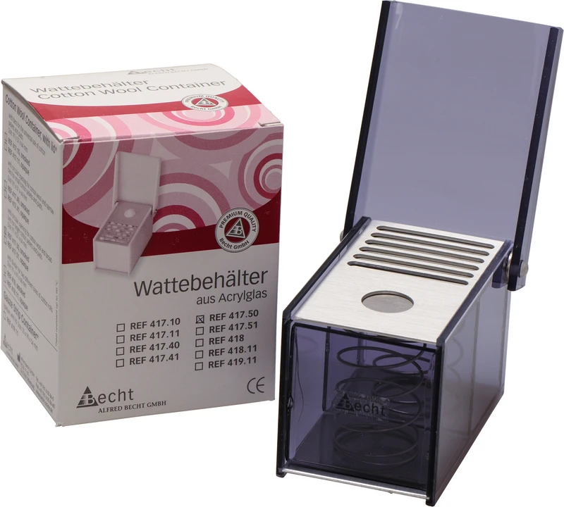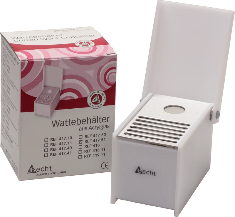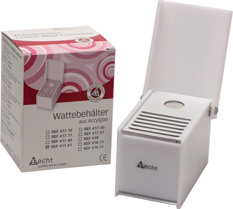 Størrelse: 97 x 68 x 68 mmEnkelt hygienisk: Våre bomullbeholdere kan uten problemer desinfiseres med et overflatedesinfeksjonsmiddel. Vi anbefaler vår spraydesinfeksjon Bechtozid plus (materialkompatibilitet dokumentert i Röhm-testen).