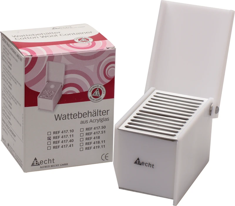 Størrelse: 97 x 68 x 68 mmEnkelt hygienisk: Våre bomullbeholdere kan uten problemer desinfiseres med et overflatedesinfeksjonsmiddel. Vi anbefaler vår spraydesinfeksjon Bechtozid plus (materialkompatibilitet dokumentert i Röhm-testen).
