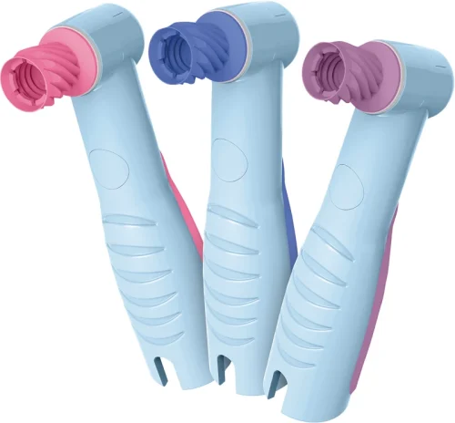 Det unike kjeglehodet på vinkelen gir en rolig, vibrasjonsfri behandling. Den myke poleringskoppen gir en utmerket subgingival rengjøring, og spiralrillene hjelper til med å presse poleringspastaen mot tannen og unngå sprut.