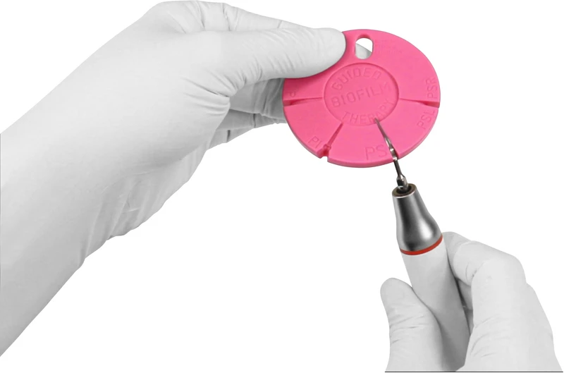 Med dette instrumentkontrollverktøyet kan behandlingseffektivitet og pasientkomfort sikres best mulig. Når spissen av det brukte PIEZON®-instrumentet når eller er kortere enn markeringen angitt på kontrollverktøyet, er det på tide å bytte instrumentet.