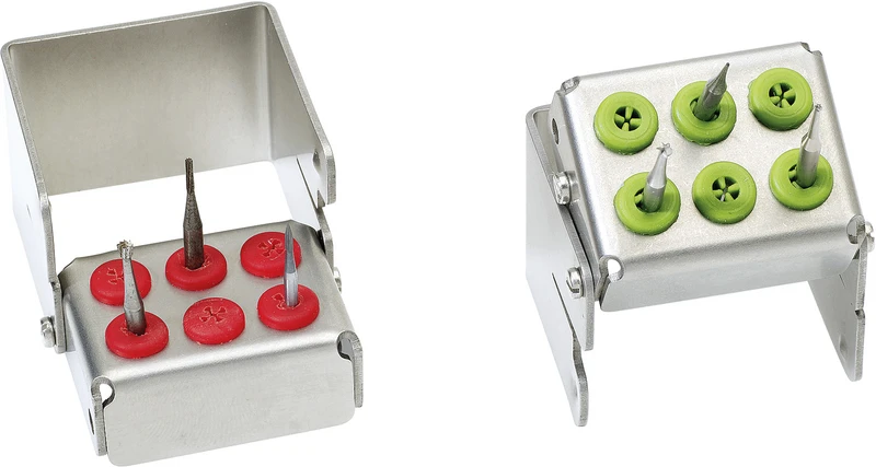 Stk borholder for 6 instrumenter (2 rader á 3 hull) gul, 3,5 x 2,5 x 3 cm