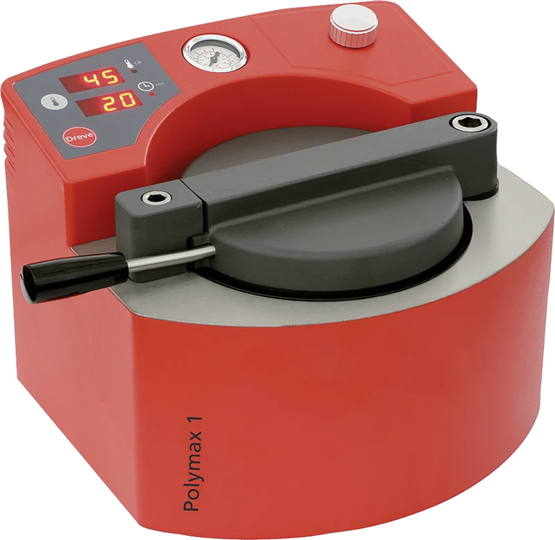 Trykkpolymeriseringsapparat med temperaturområde opptil 95 °C for 1 messingkuvette inkludert bøyle eller 2 Castdon-kuvetter.