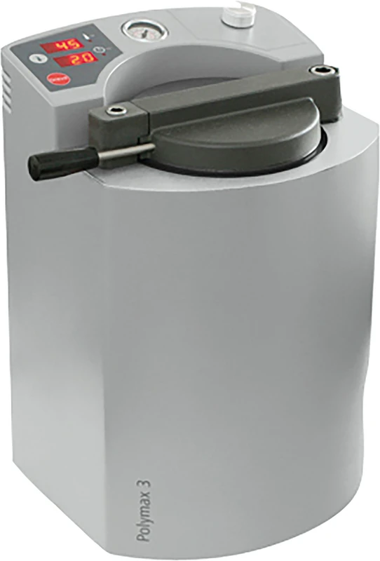 Trykkpolymeriseringsapparat med temperaturområde opptil 95 °C for 3 messingkuvetter inkludert bøyle eller 6 Castdon-kuvetter.