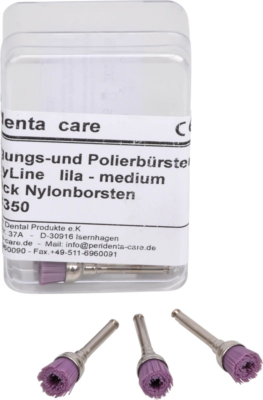 Nylonbørster av høyeste kvalitet for profylakse. Tre forskjellige styrker for optimale resultater. For fjerning av plakk og polering av restaureringer og naturlige tenner.