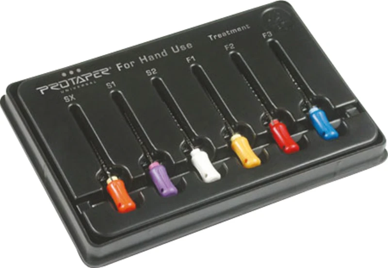 For manuell behandling. To ekstra finishing filer F4 og F5 for opparbeiding av et svært vidt apikalområde.