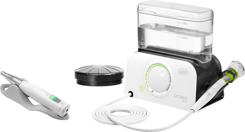 Komfortabel, trådløs og effektiv presenterer den nye W&H-profylaxeløsningen seg. Fra nå av kan Proxeo Ultra Piezo Scaler PB-530 og det trådløse Proxeo Twist poleringssystem PL-40 H styres med bare én trådløs fotkontroll. Det gjør ikke bare betjeningen enklere, men gir også mer effektivitet i arbeidsflyten.