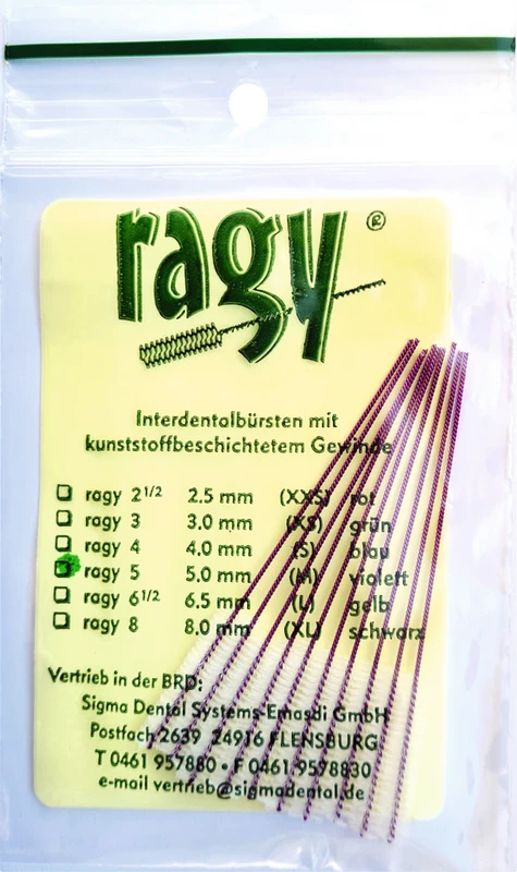 ragy® Interdentalbørster er et hjelpemiddel for effektiv pleie av tannmellomrom. Gjennom en plastbelegg av spiralen forhindres den galvaniske effekten, f.eks. ved amalgamfyllinger.