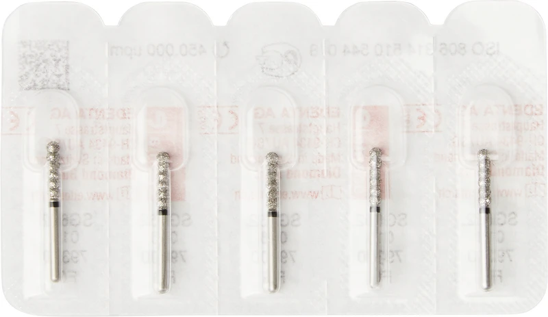 | Variant | <b>Pakke</b> 5 diamanter, svart, supergrov, FG, figur 510, hodelengde: 8 mm, ISO 018 |