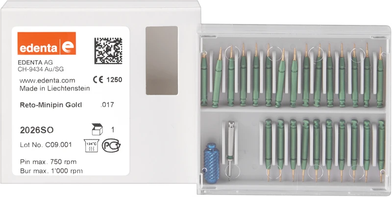 Sortiment 25 monterte stifter .017""/0,5 mm gull, 1 bor, 1 håndtak